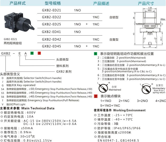 两档短柄旋钮