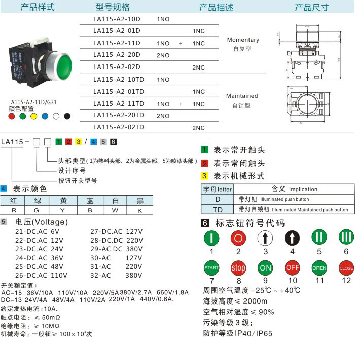 首页 产品中心 按钮系列 LA115-A2按钮系列 带灯平钮(自锁型/自复型)