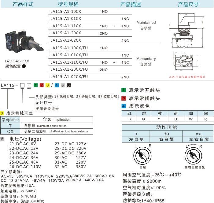 首页 产品中心 按钮系列 LA115-A1按钮系列 长柄旋钮(自锁型/自复型)